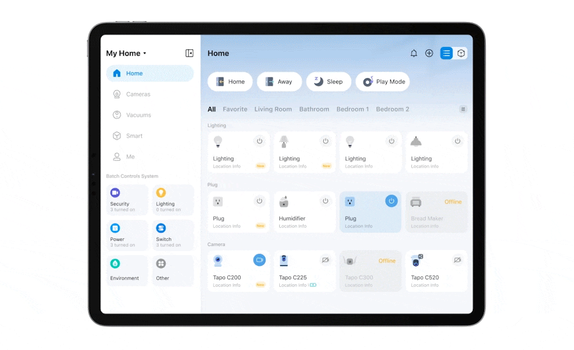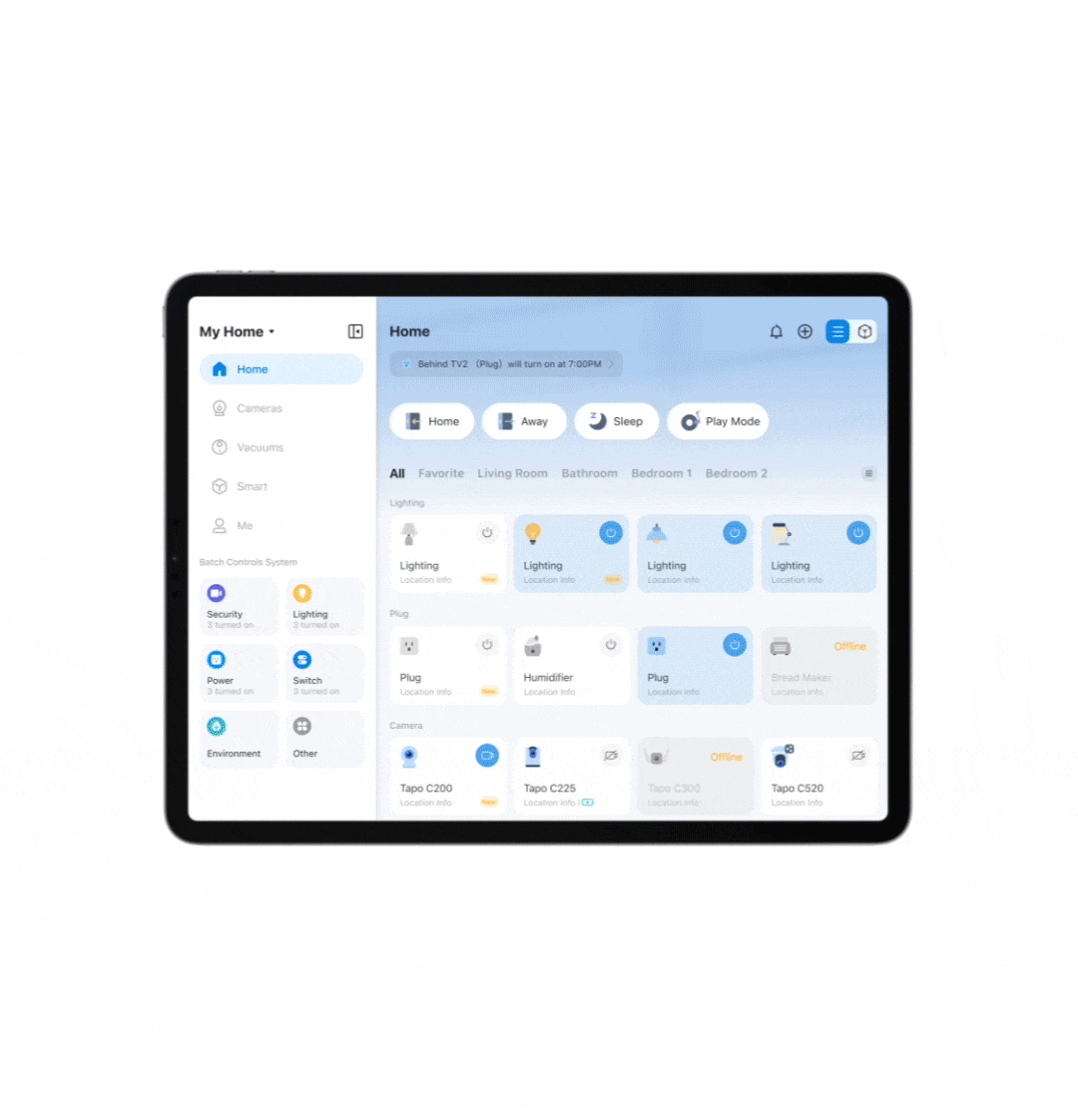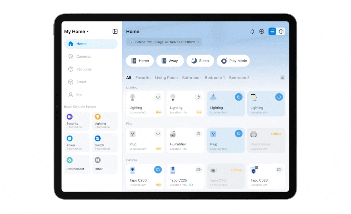 ホーム画面からかんたんに全てのデバイスにアクセスし、デバイスのオン/オフやステータスの確認をすることができます。