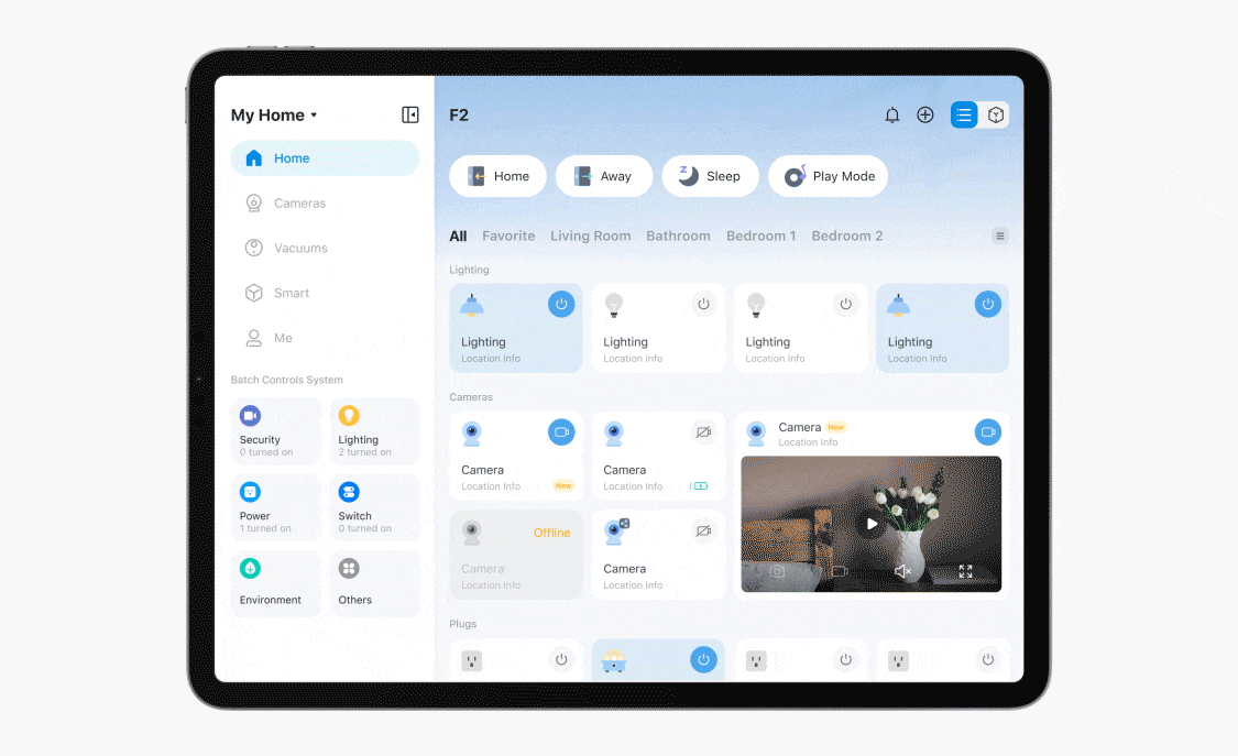 フロアプランをカスタマイズして、手軽に家じゅうのデバイスを3Dで管理します。