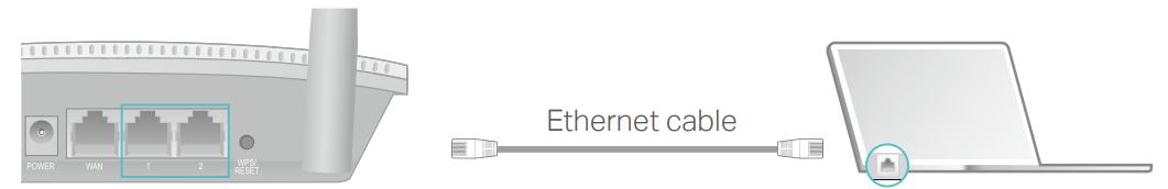 2. Conecte el cable Ethernet en uno de los puertos del Router (los puertos LAN generalmente de color amarillo). Luego, conecte el otro extremo del cable en el puerto Ethernet de su computadora.