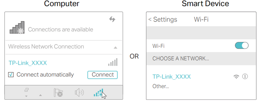 2) Haga clic en el icono de red de su computadora o vaya a Configuración de Wi-Fi de su dispositivo inteligente, y luego seleccione el SSID para unirse a la red.