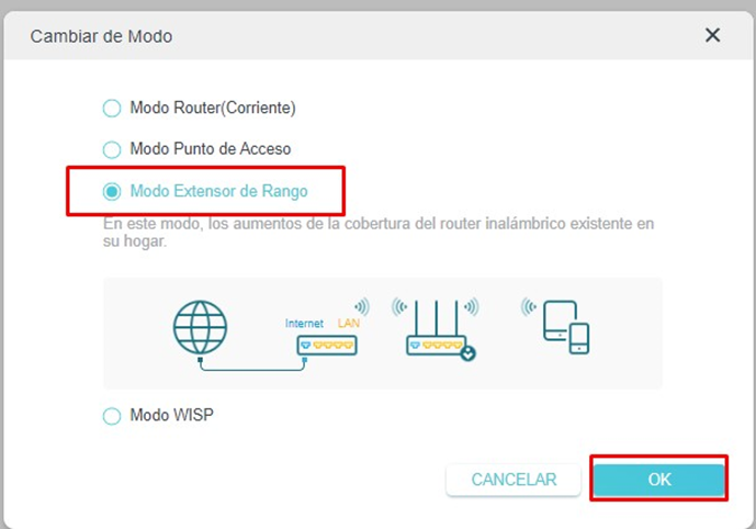 5-En la siguiente ventana, elija el Modo Extensor de rango.