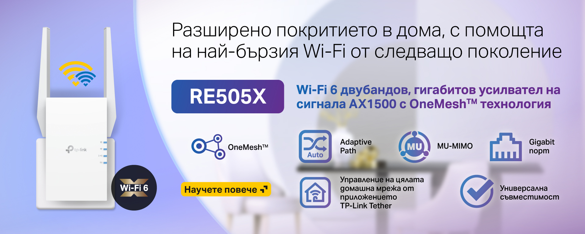 TP-Link пуска на местния пазар RE505X - нов усилвател на сигнала с AX технология и разширено Wi-Fi 6 покритие