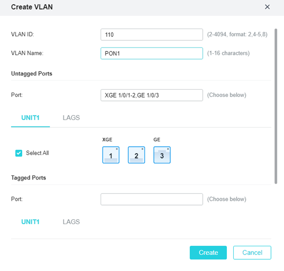 A VLAN pode ser classificada com tagged ou untagged, selecione de acordo com a configuração da sua rede.