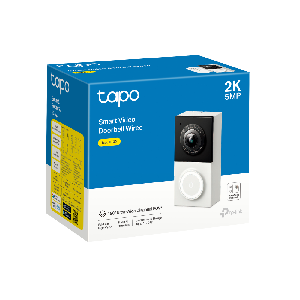 - 2K 5MP Live View: Always know what happens in front of your door through the Tapo app. With the starlight sensor and 2K 5MP resolution, check all the fine details captured even in low-light environments.