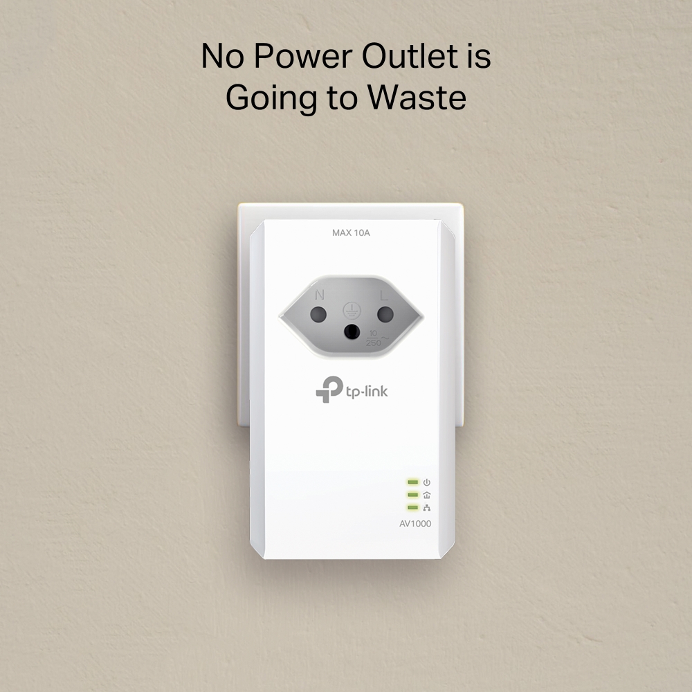 Die integrierte Steckdose ermöglicht den Anschluss weiterer Geräte, während der eingebaute Rauschfilter elektrische Störungen reduziert und so die Powerline-Leistung verbessert.
