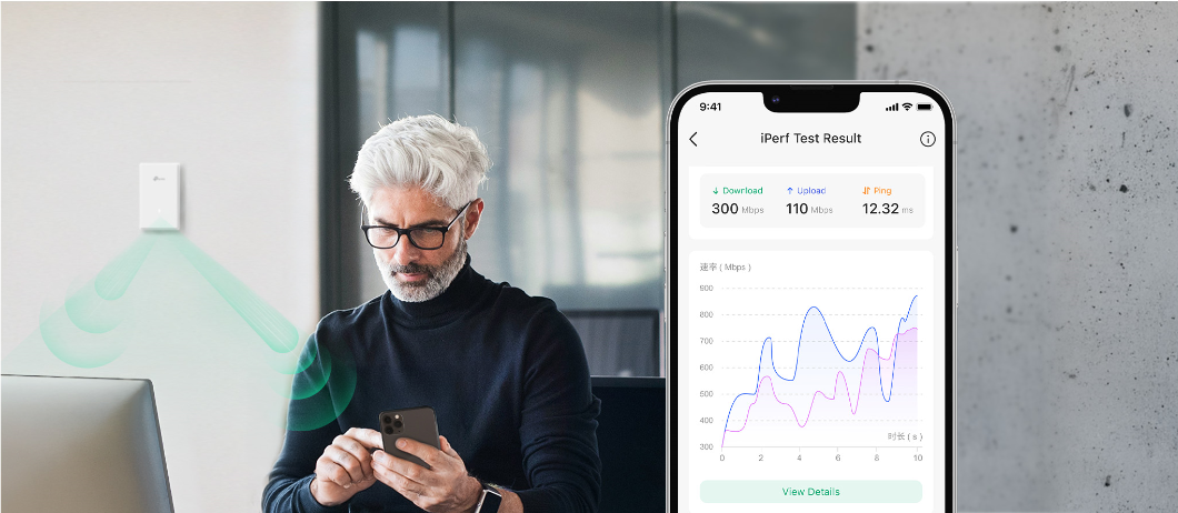 Omada Wi-Fi Navi comes equipped with native iPerf client integration, giving professionals a convenient tool for in-depth network diagnostics. Run multi-threaded speed tests, analyze jitter, and identify retransmission issues—all from your phone using the built-in interface.