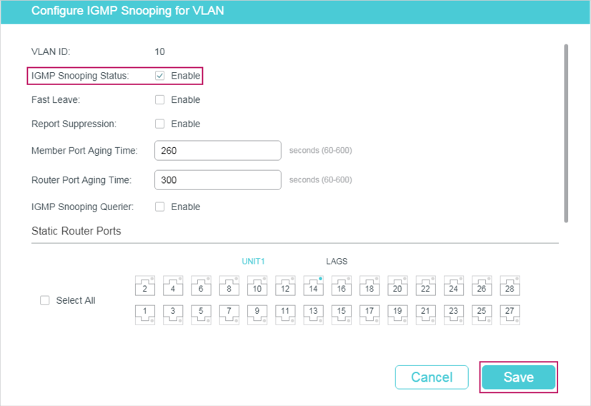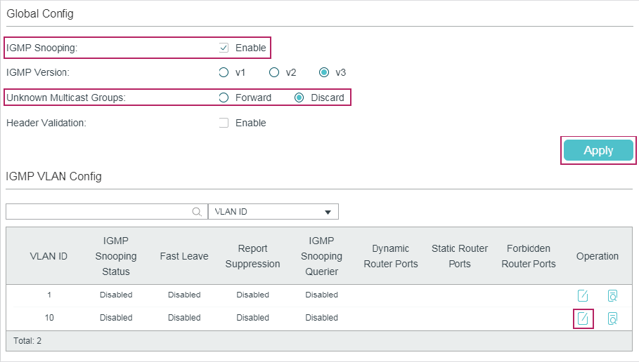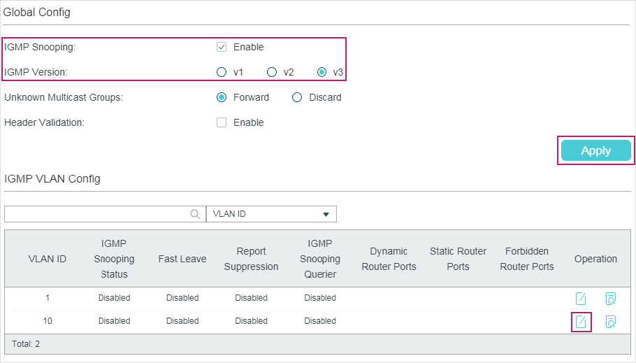 Figure 2-2 Configure IGMP Snooping for VLAN