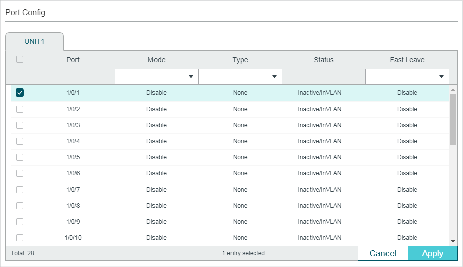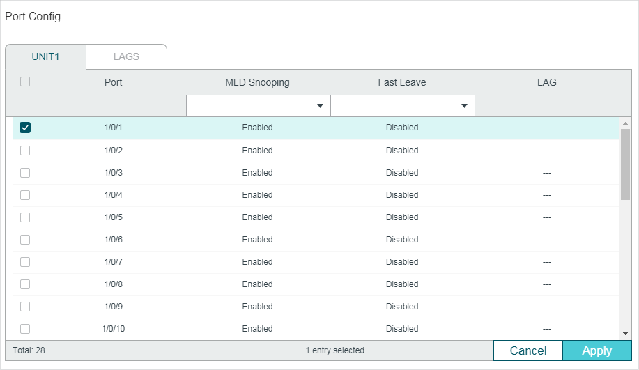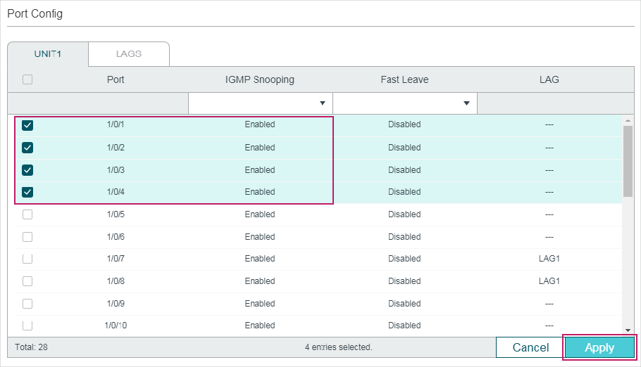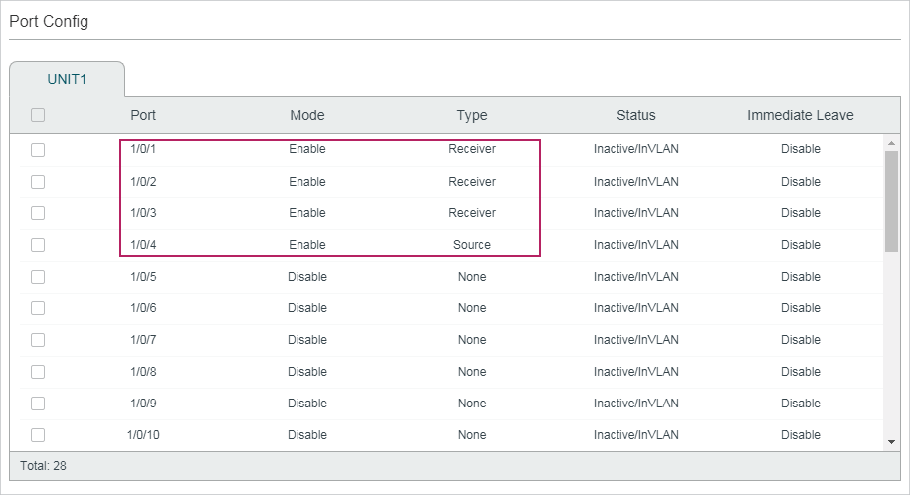 4)Choose the menu L2 FEATURES > Multicast > IGMP Snooping > Port Config to load the following page.