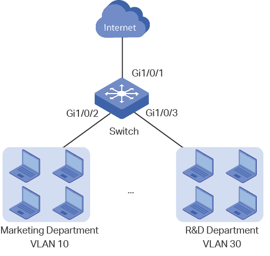 Several departments are connected to the company network as shown in Figure 4-1. Now the Marketing Department that is in VLAN 10 has network requirements as follows: