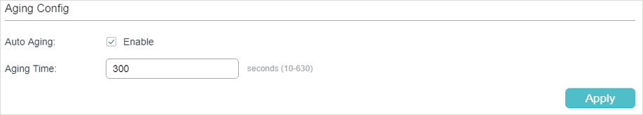 Enable Auto Aging, then the switch automatically updates the dynamic address table with the aging mechanism. By default, it is enabled. |