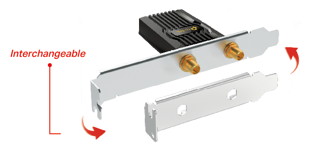 Low-Profile Bracket In addition to the full-height bracket, a low-profile bracket is also provided for mini tower computer cases. These customized options give you the flexibility to find a bracket that fits your board design perfectly. |