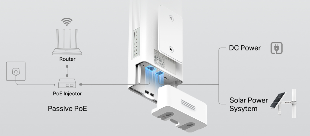 PoE/DC Power Support: Simplified Outdoor Setup The Archer MR402-Outdoor features PoE and DC power supply, simplifying outdoor setup with flexible power options and ensuring reliable connectivity in diverse outdoor environments. |