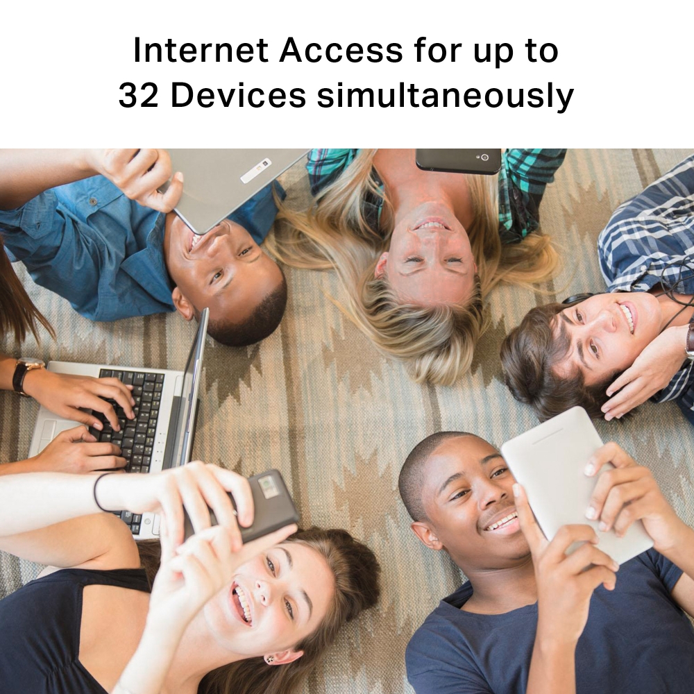 - Cutting-edge 4G network – share internet access with up to 32 Wi-Fi devices and enjoy download speeds of up to 150 Mbps