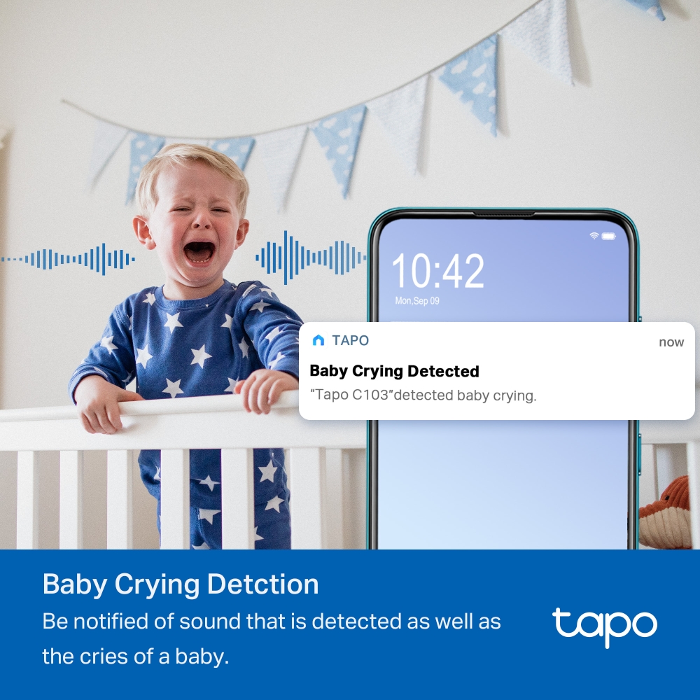 Full Duplex Two-Way Audio - Listen and speak to guests, delivery drivers, and pets on the other side of the camera with enhanced clarity thanks to Tapo C103's premium microphone and speakers