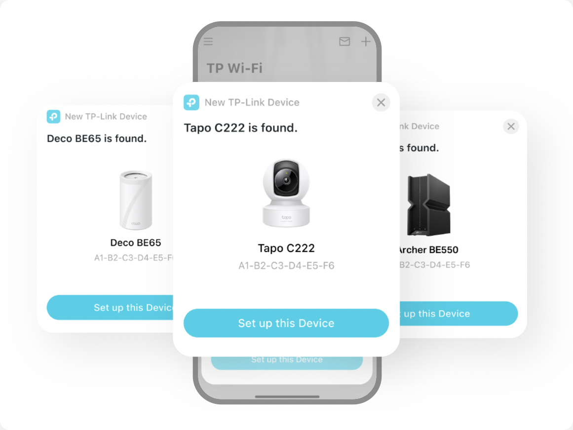 With TSS, powered-on TP-Link devices are automatically detected and join the network with one tap.