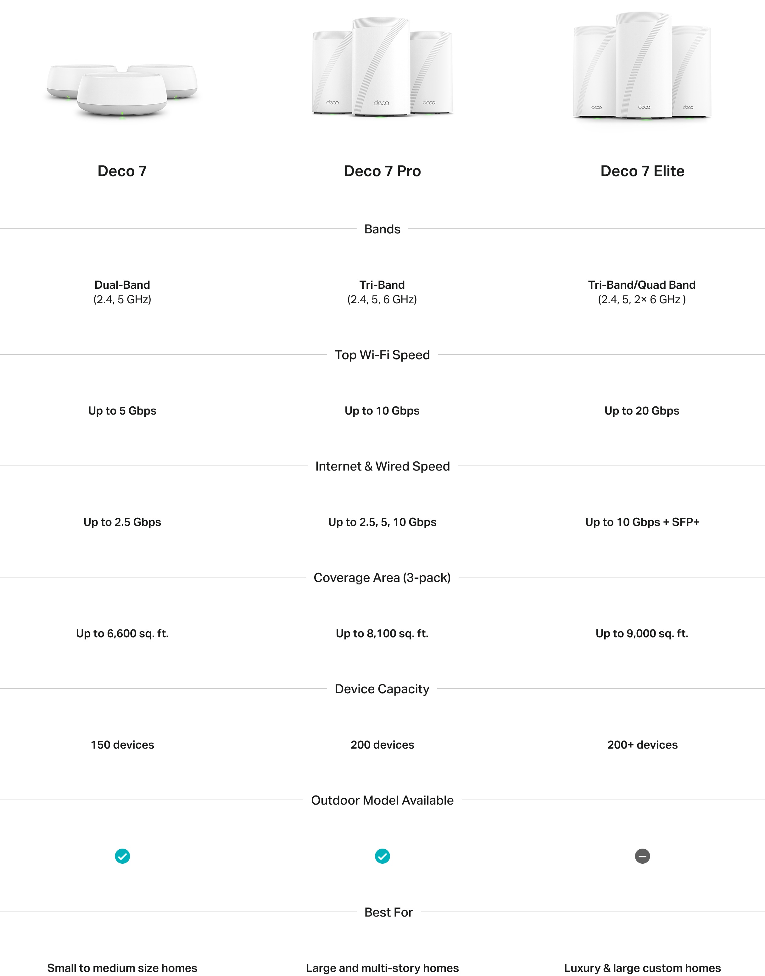 • Deco 7 Elite: Top-tier Wi-Fi 7 mesh for large, luxury, or multi-story homes
