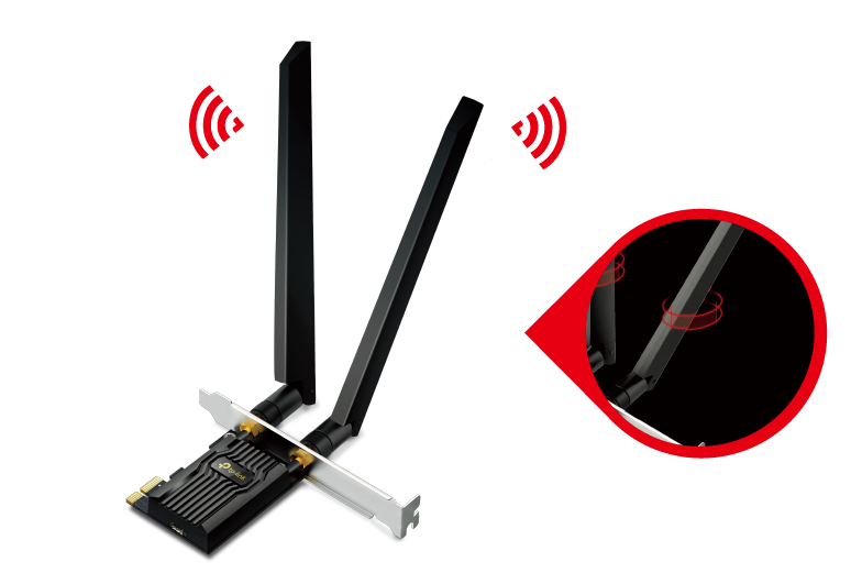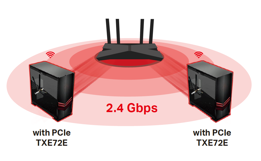 Superior Wi-Fi Reception Bring your PC’s Wi-Fi reception to the next level and take full advantage of your Wi-Fi 6E router. Archer TXE72E delivers faster and clearer Wi-Fi thanks to its equipped 1024-QAM and MU-MIMO technology.‡ |