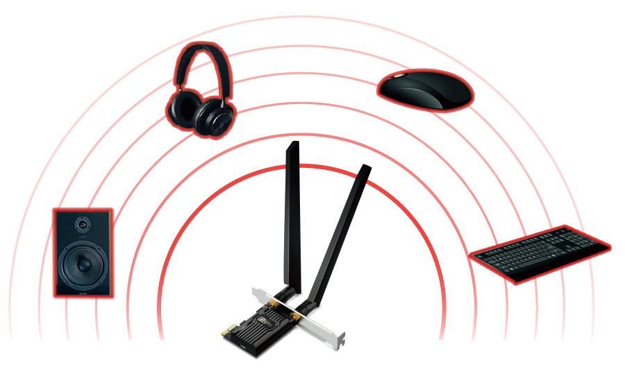 Bluetooth 5.3 TXE72E equips your PC with more advanced Bluetooth 5.3 that achieves faster speed and broader coverage than older versions to perfectly coordinate with your game controllers, headphones, keyboards, and other Bluetooth devices.** |