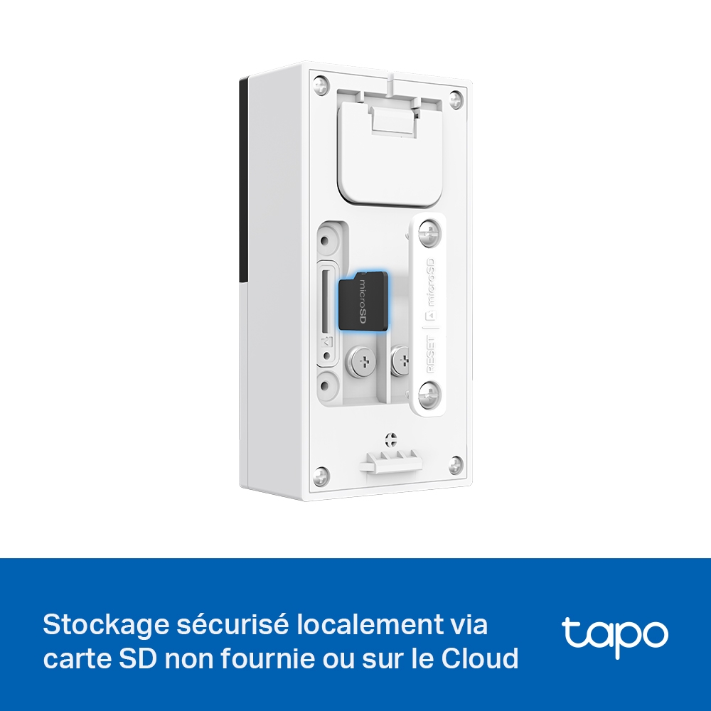 - Choix de stockage flexible : enregistrez les vidéos enregistrées sur la carte microSD § installée dans le hub (jusqu'à 512 Go) ou en utilisant les services de stockage cloud Tapo Care △ .