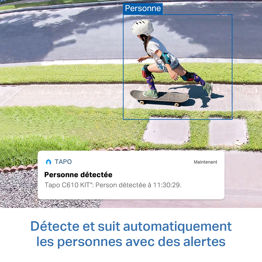 - Détection intelligente de personne : recevez des alertes lorsqu'une personne est détectée, réduisant ainsi les fausses alertes et les notifications inutiles.