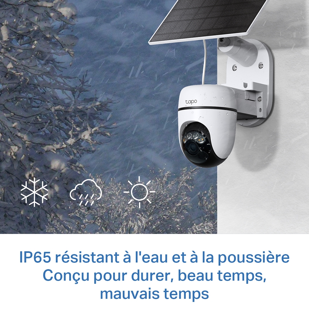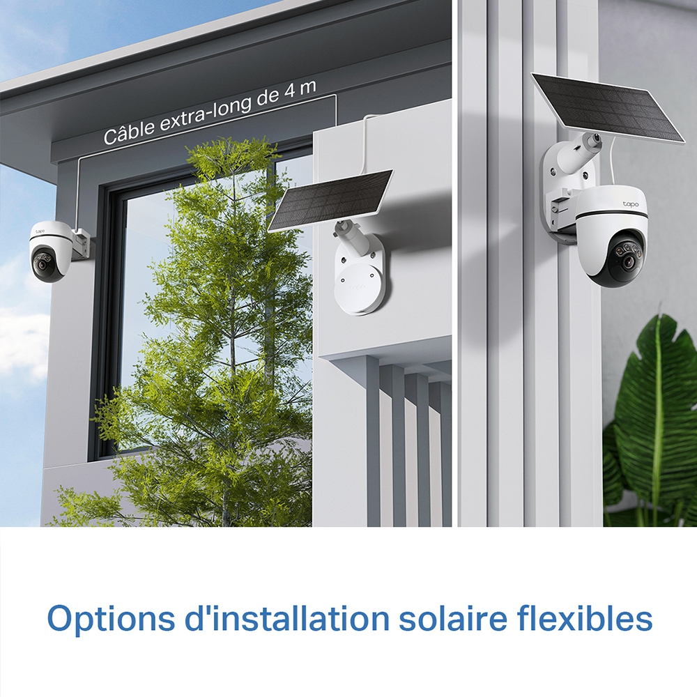 - Alimentation électrique ininterrompue : Profitez d'une expérience de sécurité sans entretien avec le panneau solaire Tapo, qui fournit une alimentation électrique continue et une installation flexible.