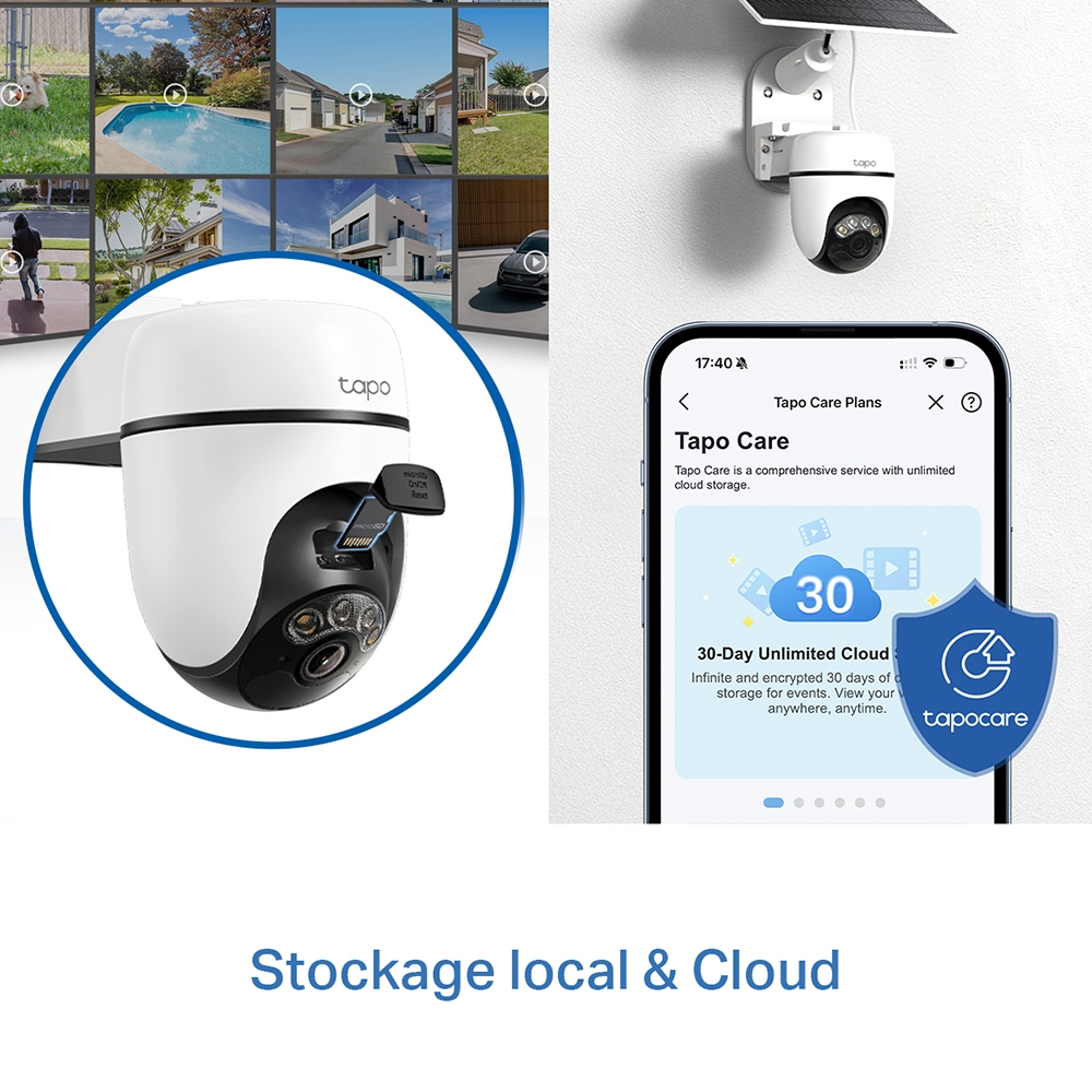 - Options de stockage flexibles : choisissez entre le stockage microSD local jusqu'à 512 Go ou le service Cloud sécurisé Tapo Care pour une tranquillité d'esprit supplémentaire.