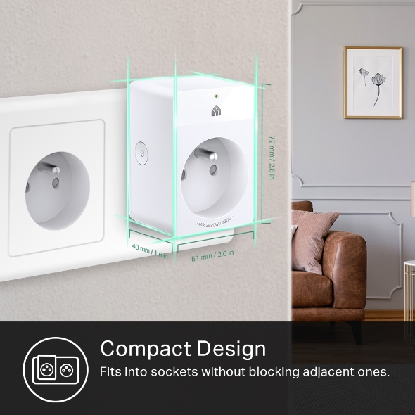 S'adapte à n'importe quelle prise standard sans bloquer les prises adjacentes grâce à son design élégant, rectangulaire et compact.