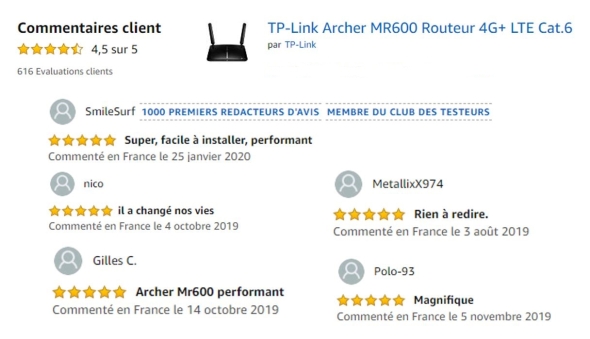 "Avec le modem/routeur dual band TP-Link Archer MR600, vous profiterez d’un puissant dispositif pour améliorer votre connexion Internet et la stabiliser." SCORE : 4,5/52021, France