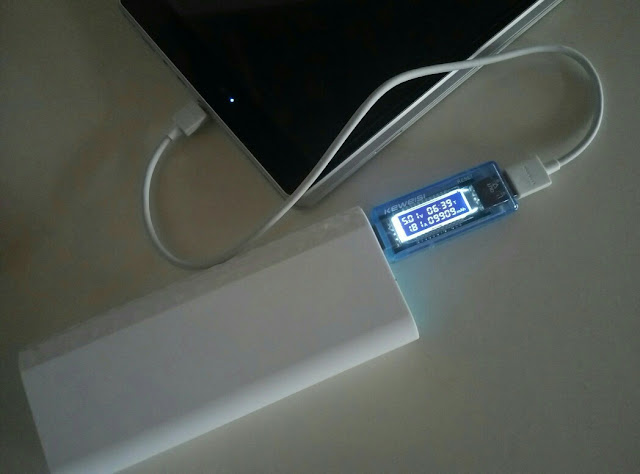 Sekarang coba menggunakan tools dari keweisi ini sebagai tolak ukur charging input masuk dari Powerbank itu sendiri dan perlu diketahui keweisi ini mempunyai kesalahan error sekitar 1-2 % saja sehingga alat ini hanya sebagai perbandingan antara input masuk dan keluar.