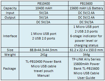 Banyak powerbank bermunculan sejak pertama kali diperkenalkan seperti Yaobaoo dan merk merk lainnya termasuk Samsung dan LG. Salah satu yang kita bahas saat ini adalah Powerbank keluaran produsen Tiongkok TPLink yang dikemas dalam produk premium dengan segudang fitur proteksi seperti over-current, over-charge, over-discharge, dan pemanasan berlebihan sehingga memastikan keamananan dan kehandalan dalam pengisian untuk menghindari potensi bahaya ke perangkat Anda. Semua keamanan itu ada dalam 2 produk Powerbank TPLink PB10400 berkapasitas 10400 mAH dan PB15600 berkapasitas 15600 mAH. Spesifikasi PB10400 Dan PB15600 :