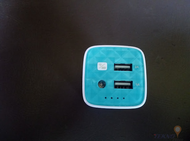 selain mempunyai 1 Port MicroUSB dan 2 Port USB TPLink PB10400 mempunyai indikator 4 LED serta tombol untuk indikator battery sekaligus untuk mengaktifkan senter dengan LED.