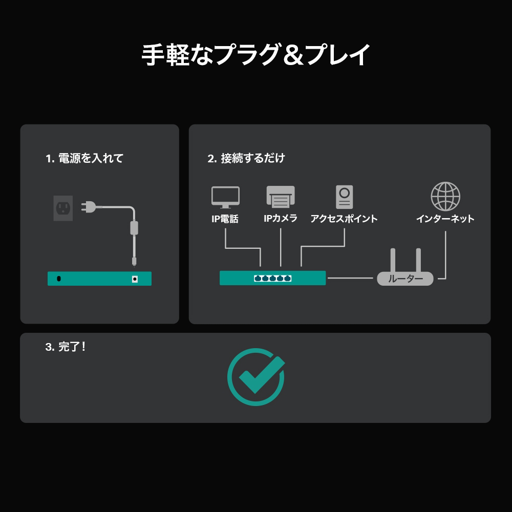 • プラグ&プレイ:技術者がいなくても手軽に設置可能