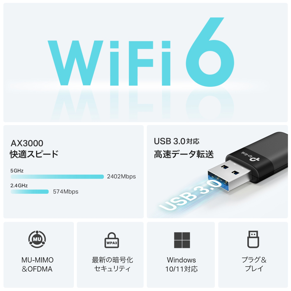 AX3000 デュアルバンドUSB Wi-Fi 6子機