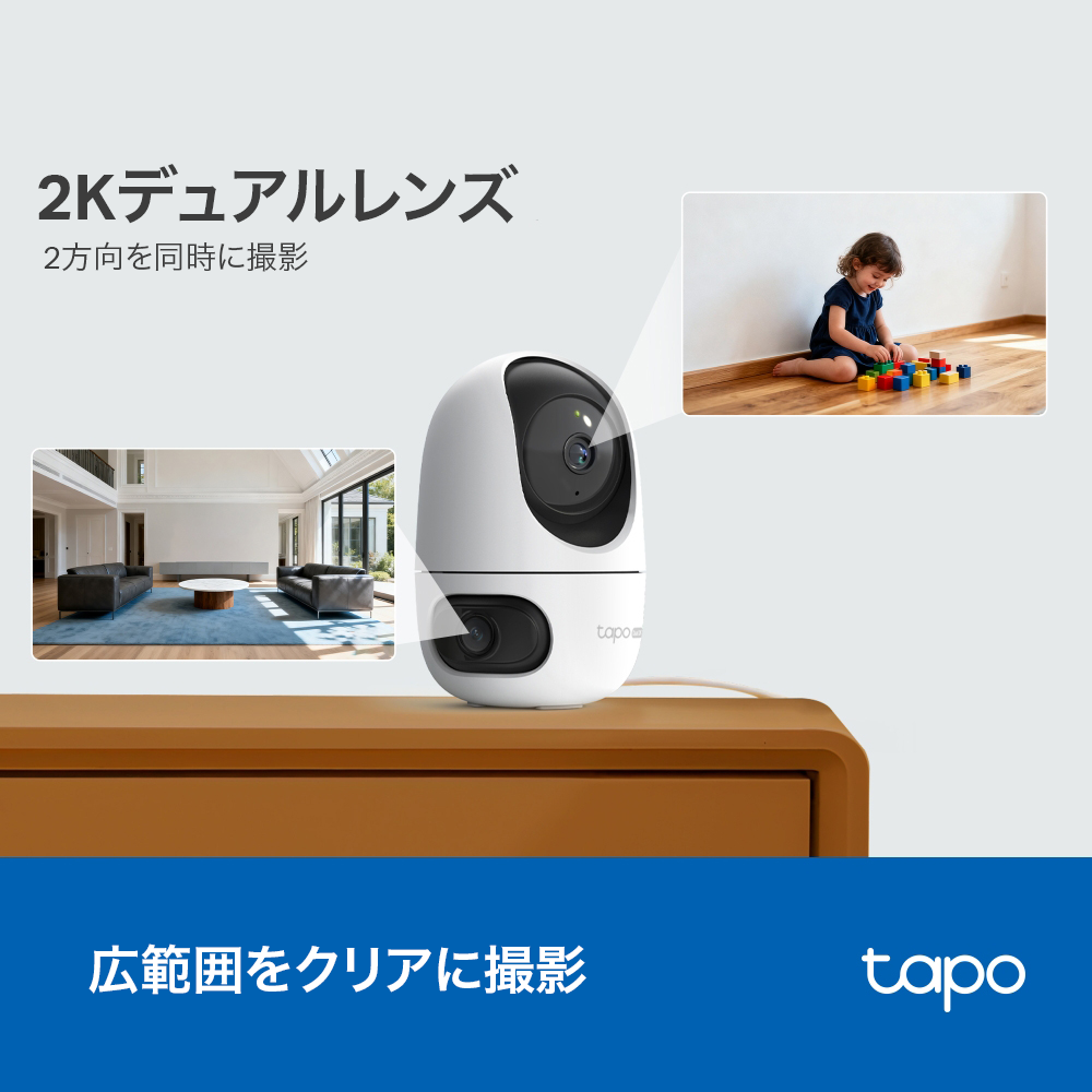 | 製品構成 | Tapo C245D本体×1 DC電源アダプター×1 位置決めシール×1 取り付け用台座×1 取り付け用ネジ×4 取り付け用アンカー×4 かんたん設定ガイド |