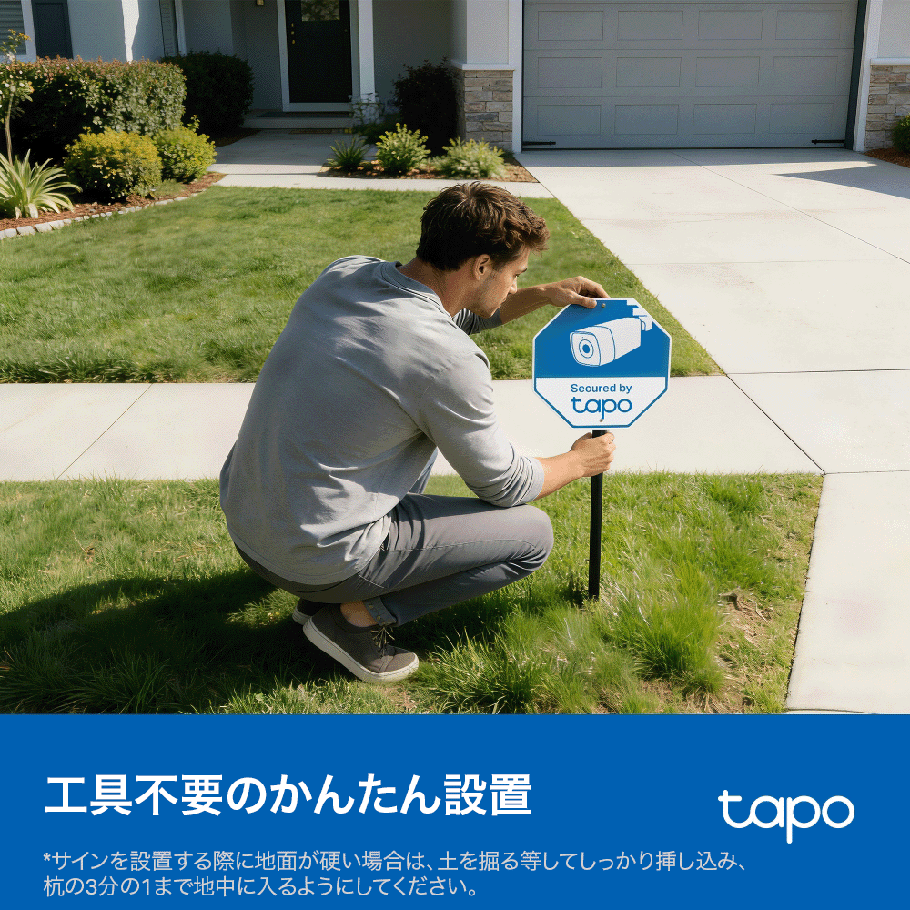 - かんたん設置:ステッカーは貼るだけ、サインは組み立てて地面に挿すだけなので、工具は一切不要です。