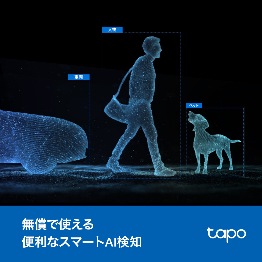 - スマートAI検知:AIが人物・ペット・車両を検知して識別し、必要な通知だけをアプリを通じてお知らせします。