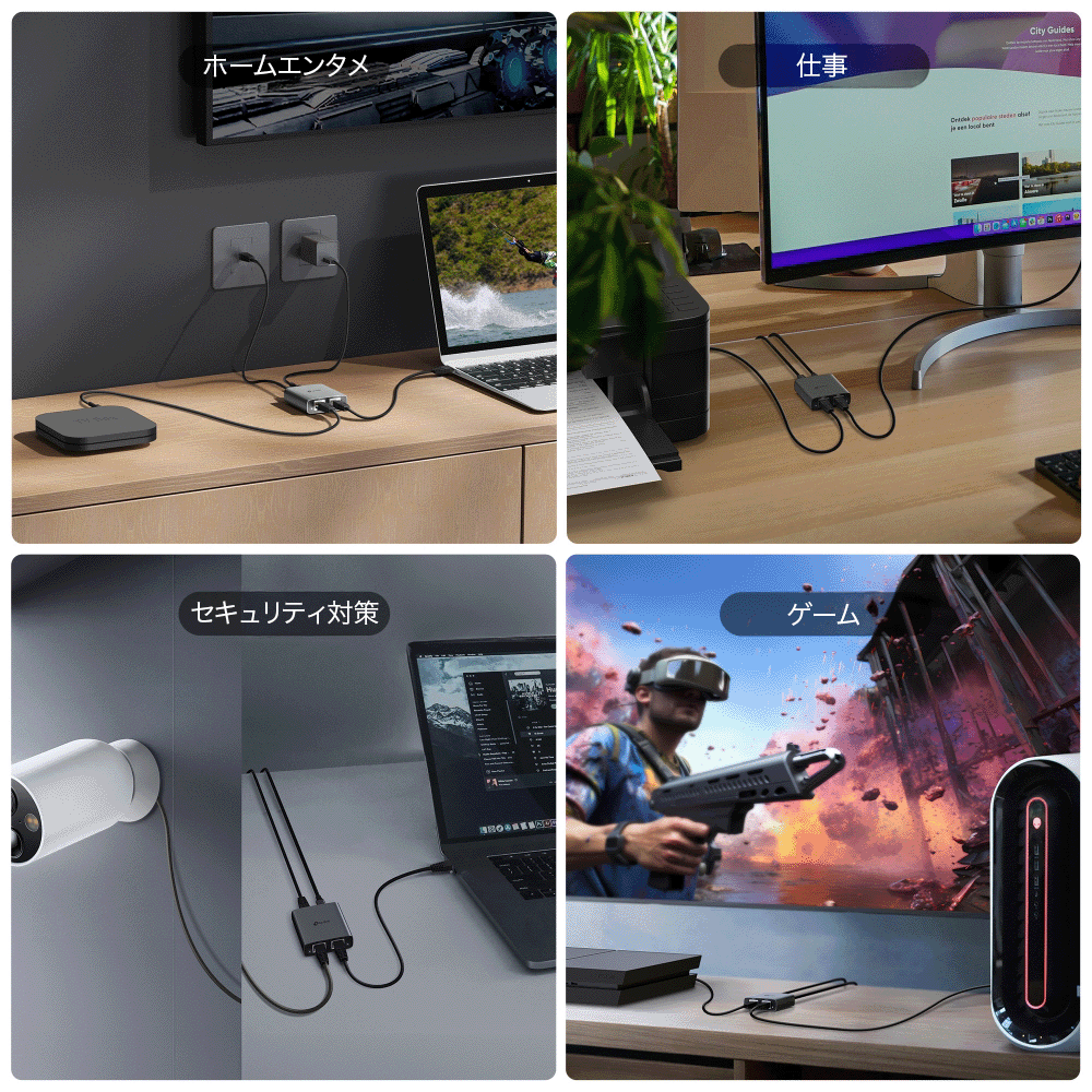 - プラグ&プレイ:電源とデバイスに繋げば、複雑な設定不要ですぐにギガビットネットワークを利用できます。