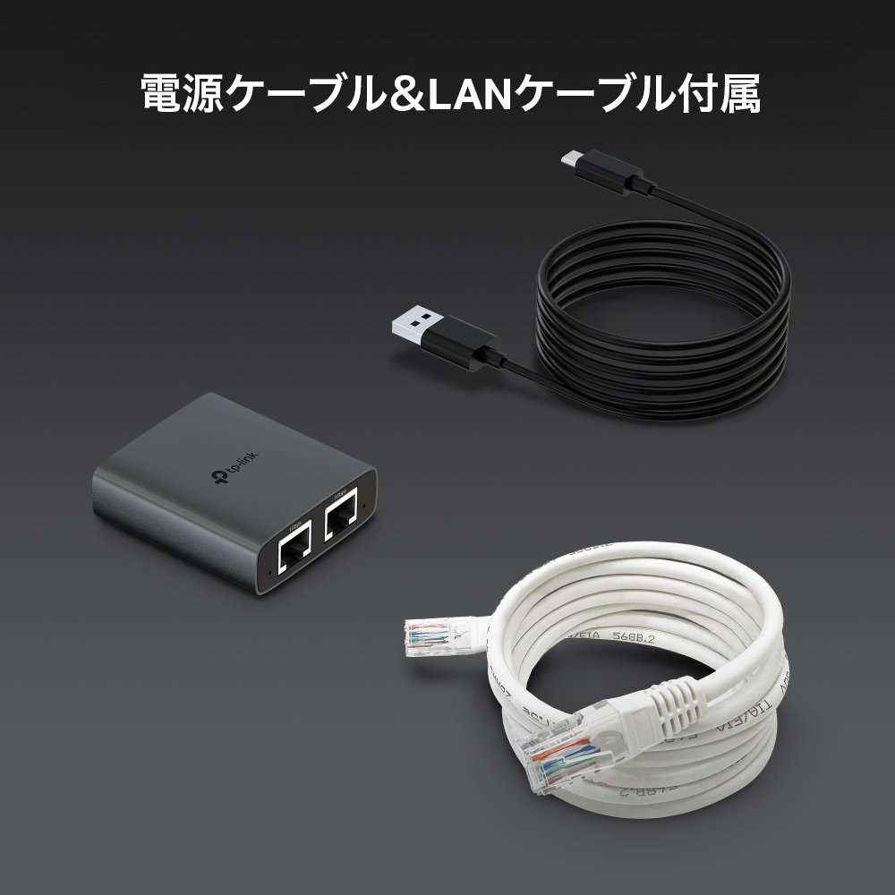 - 電源ケーブル&LANケーブル付属:USB Type-C電源ケーブルとCat 5e LANケーブルが付属しているため、デバイスに接続してすぐに使い始められます。