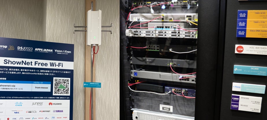 また、会場内のネットワークを構築する「ShowNet」プロジェクトに今年も参加。Omadaシリーズの「EAP650-Outdoor」や「OC300」を使用し、来場者や出展者が利用するフリーWi-Fi構築や運営をサポートさせていただきました。