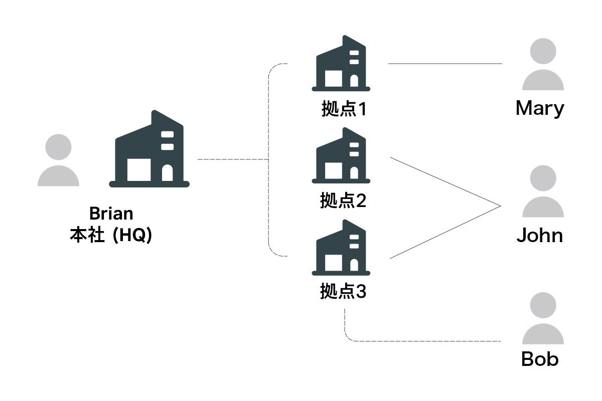 また、拠点ごとで役割に応じたアクセス権限を設定でき、各アカウントに対して「管理者」「閲覧者」「ライブのみ」「アクセスなし」の権限が選択可能です。