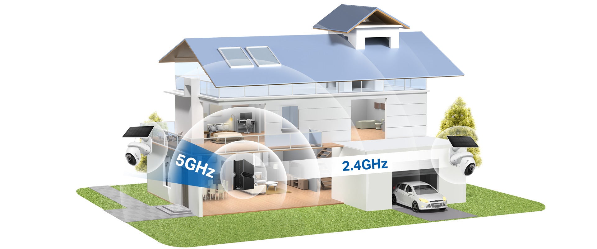 「Tapo C660 KIT」は従来の2.4GHz帯に加え、5GHz帯を使用した通信にも対応。混雑しがちな2.4GHzよりも広い帯域を利用できるため、高画質の映像をより安定した通信で受信できます。