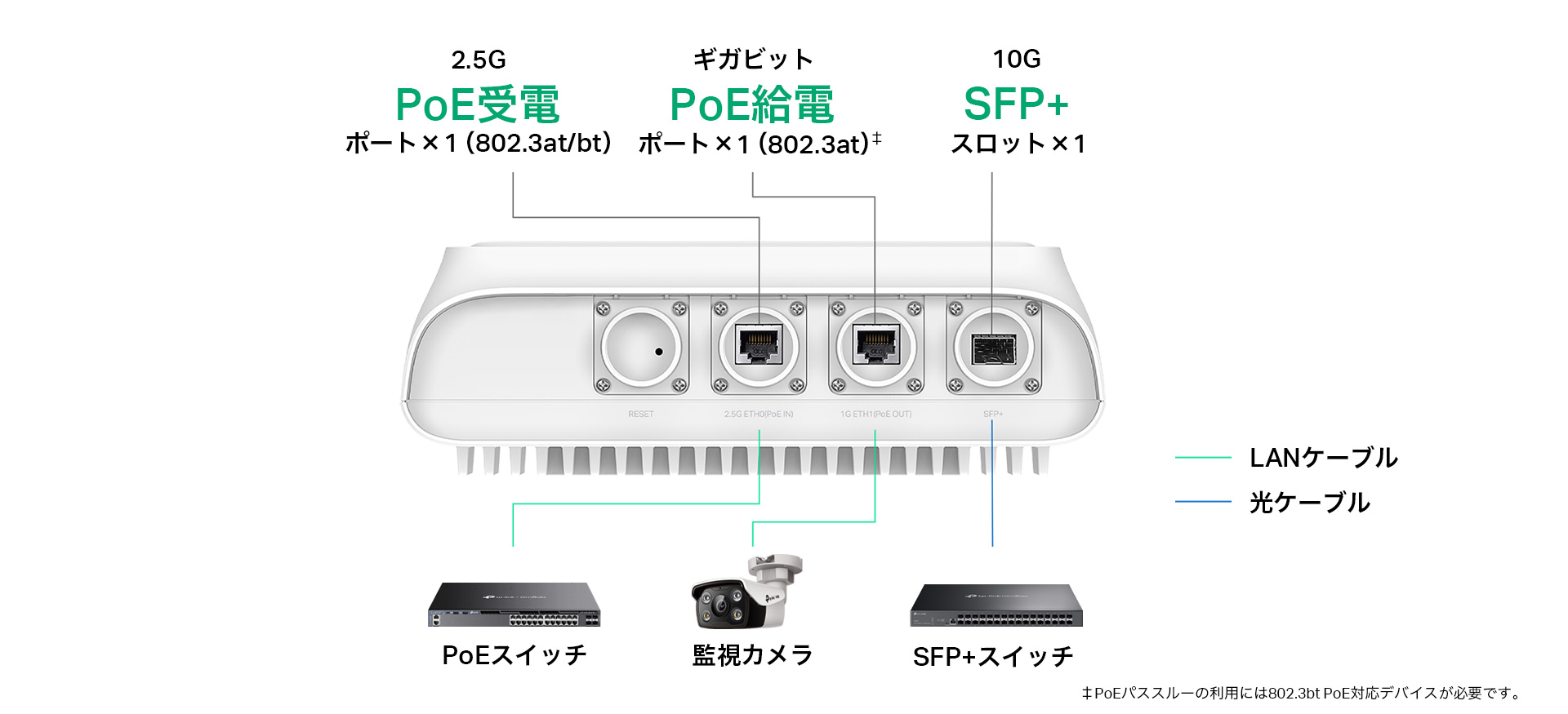 ・電源:802.3at/bt PoE