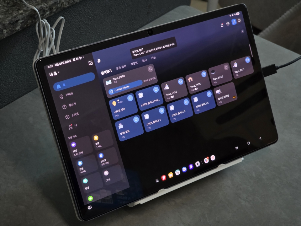 타포 앱은 태블릿 PC용으로도 출시됐다. 태블릿 PC를 타포 H500에 거치하면 멋진 스마트 홈 베이스로 활용할 수 있다. 거치된 태블릿 PC를 충전할 수 있으며, 태블릿 PC에 걸맞은 시원시원한 인터페이스를 제공하기 때문에 더욱 쾌적하다.