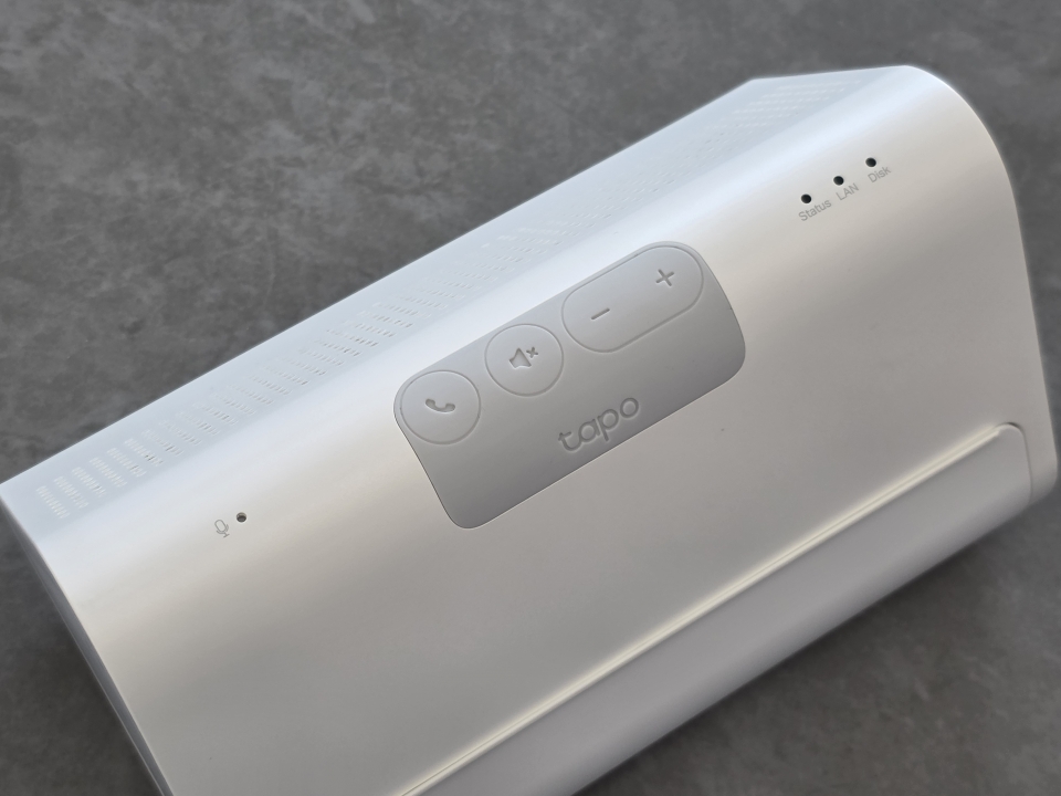 본체 상단에는 마이크와 LED 인디케이터, 그리고 다양한 물리 버튼이 있어 직관적인 제어가 가능하다.