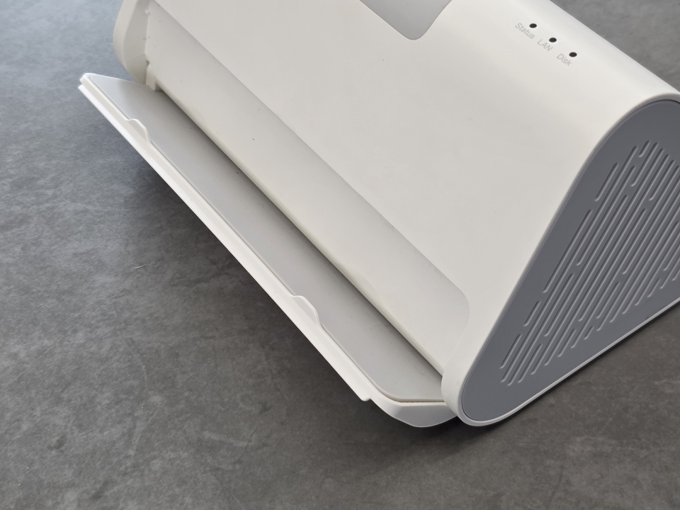본체는 삼각기둥 형태로 제작됐으며, 화이트 컬러와 그레이 컬러의 심플한 조화가 돋보인다. 어느 곳에 두어도 위화감 없이 사용할 수 있는 디자인이며, 손쉽게 거치하여 사용할 수 있다.