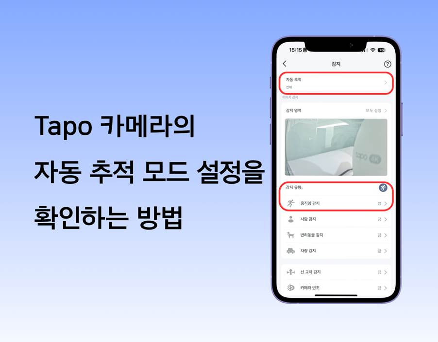 • 확인 경로: Tapo 앱 > 디바이스 설정 > 감지 > 자동 추적