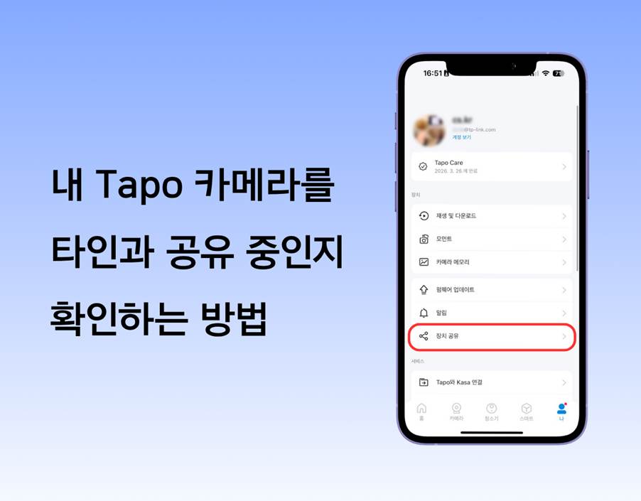 • 확인 경로: Tapo 앱 > 디바이스 설정 > 장치 공유