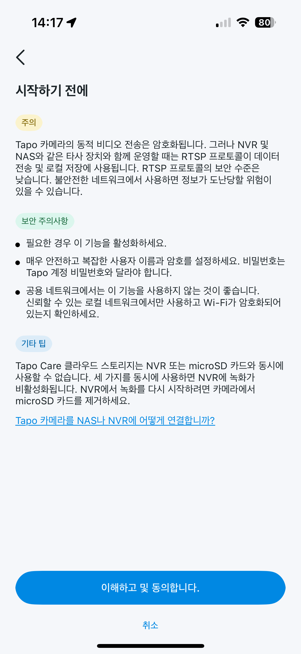 또한 Tapo 카메라에서 RTSP/ONVIF 기능을 활성화할 경우, 네트워크 환경 및 보안 설정에 따라 보안 위험이 발생할 수 있음을 Tapo 앱에서 사전에 안내합니다. 해당 기능은 사용자의 선택에 따라 활성화되는 기능으로, 사용자가 이를 인지하고 설정한 이후 발생하는 보안 이슈나 데이터 유출에 대해서는 사용자 환경에 따른 책임이 적용될 수 있습니다.