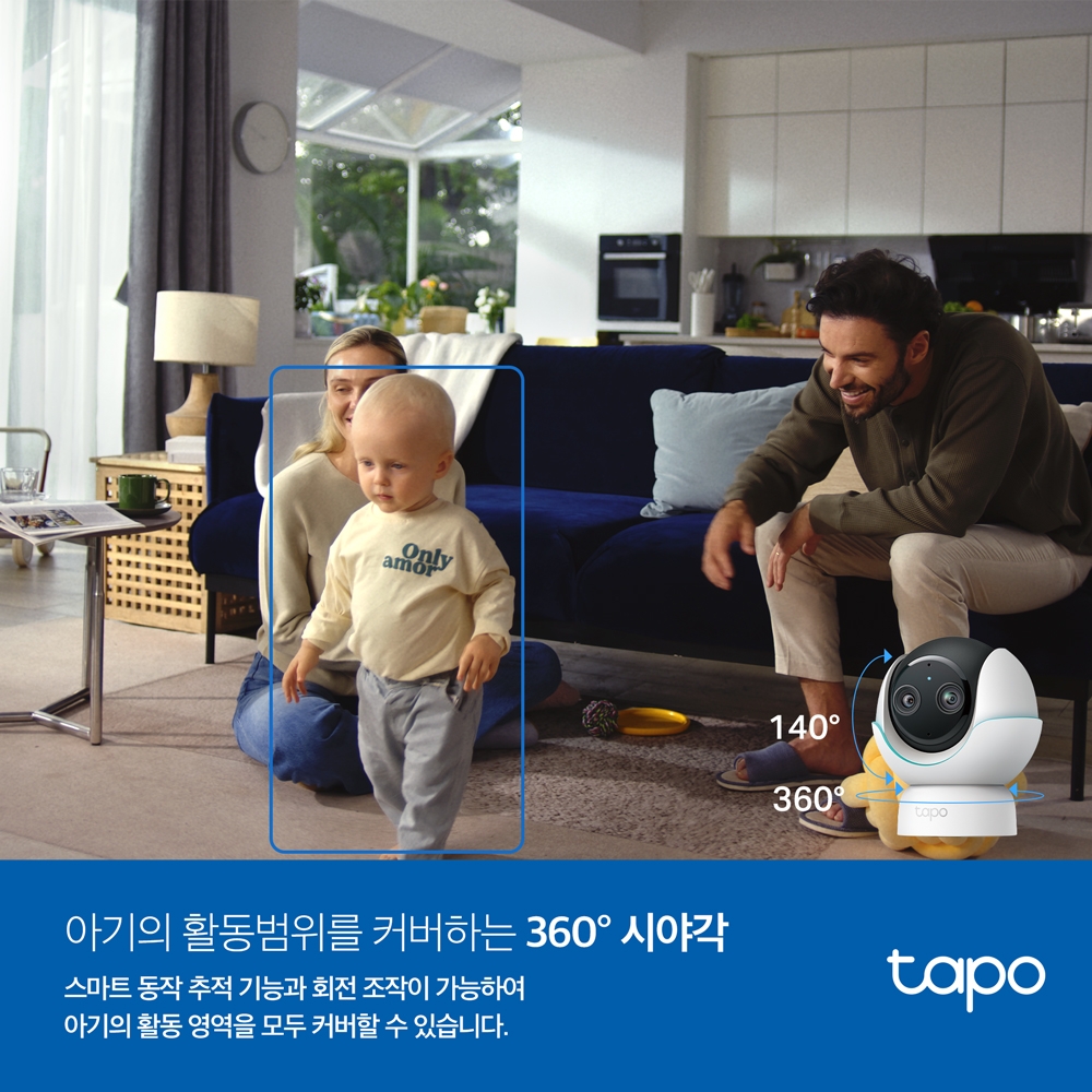 스마트 동작 추적 기능으로 아기의 움직임을 카메라 시야 내에 유지하고 360° 회전형 시야로 어떤 각도에서도 디테일을