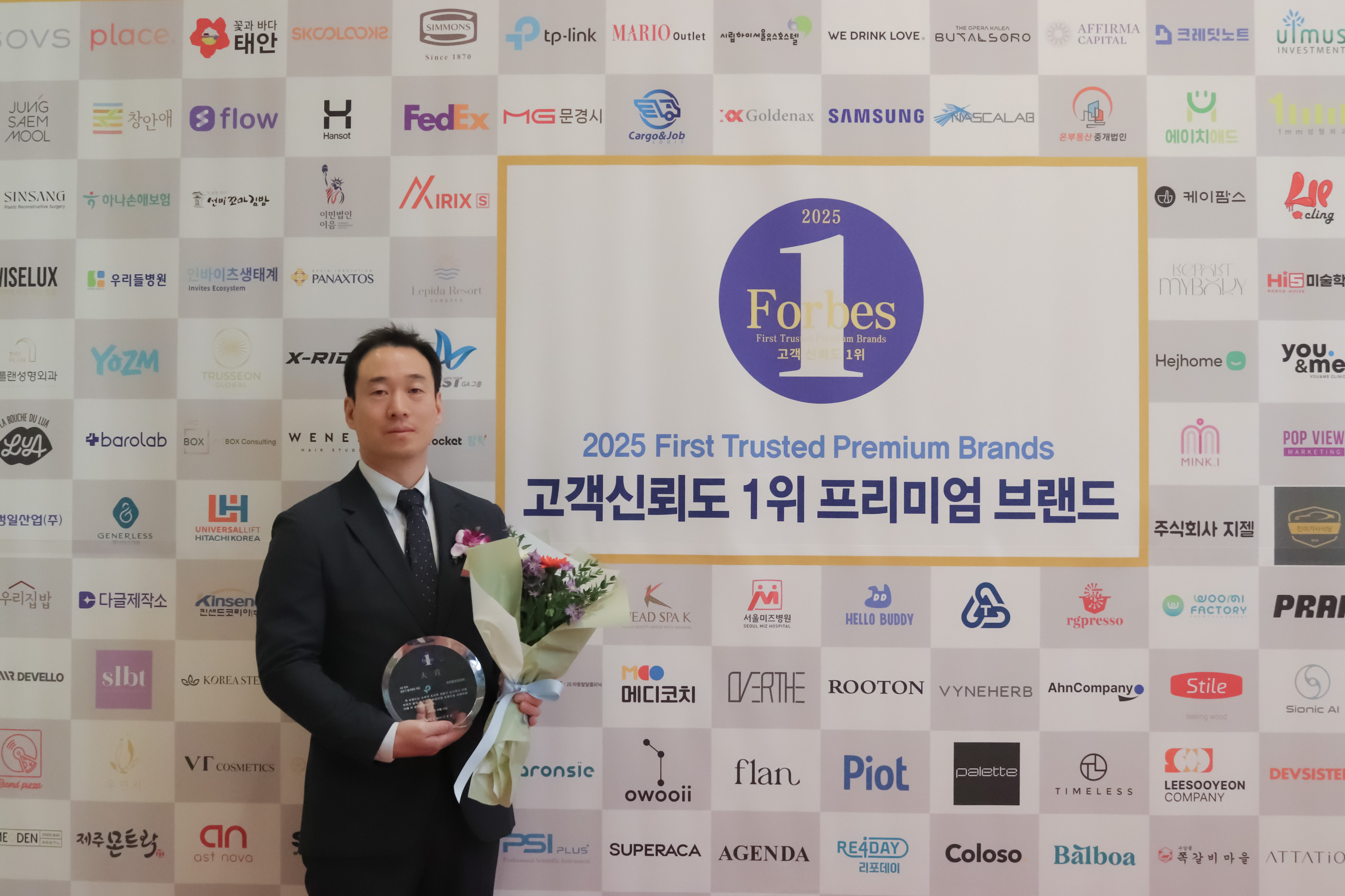 티피링크코리아 이민웅 부장이 ‘2025 고객신뢰도 1위 프리미엄 브랜드 대상’ 시상식에서 수상 후 기념 촬영을 하고 있다.